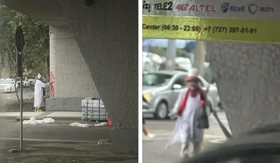 Threads әлеуметтік желісінде жарияланған суретте қарияның Сейфуллин мен Райымбек даңғылдарының қиылысындағы көпірге сурет салып жатқан сәті бейнеленген. Жергілікті тұрғындар бұл әрекетке наразы болып:
