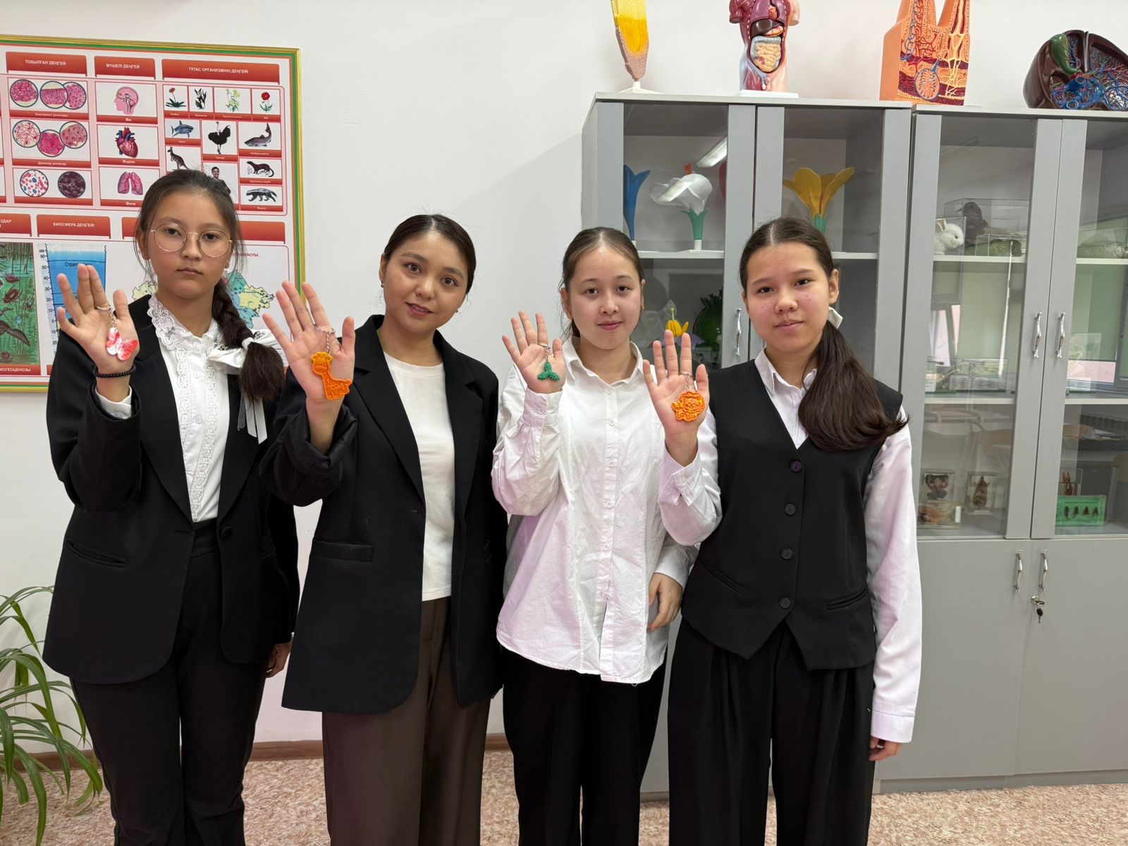 Екінші бастамасы – «Eco-key» экологиялық жобасы. Мұнда балалар өздері жинаған пластик қақпақшалардан экобрелоктар жасап, қайта өңдеудің маңызын тәжірибе арқылы түсінді. Бұл жұмыс қарапайым көрінгенімен, жасөспірімдерге үлкен тәрбие берді: табиғатты қорғау үлкен жауапкершілік екенін санасына құйды.